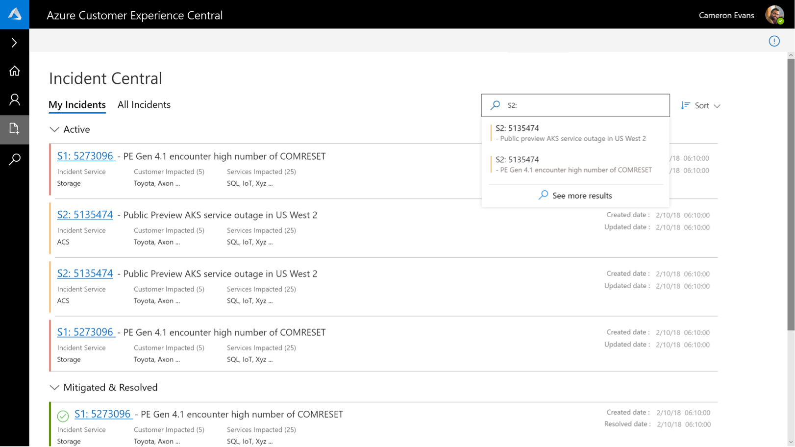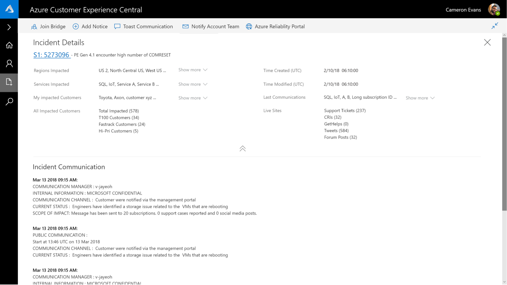 Azure customer support lags Industry and competitive benchmarks. Multiple teams within the Azure organization are focused on driving improvements to customer impacting features. Given that we have numerous specialized areas and use cases, we want to design a unified & comprehensive dashboard that monitors all the injuries and collates all the reporting views. We aim to develop a ‘single pane of glass’ view for both program owners, engineers and clients.