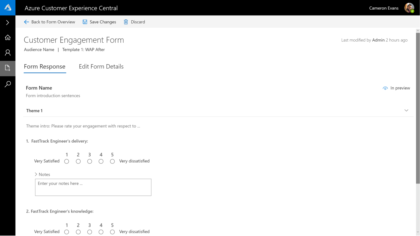 We're utilizing Fabric design language & . framework to design this portal, which is a different design language from Azure portal. Since this is an internal tool, the goal is to align this with other Office 365 products, which our customers are already familiar with.