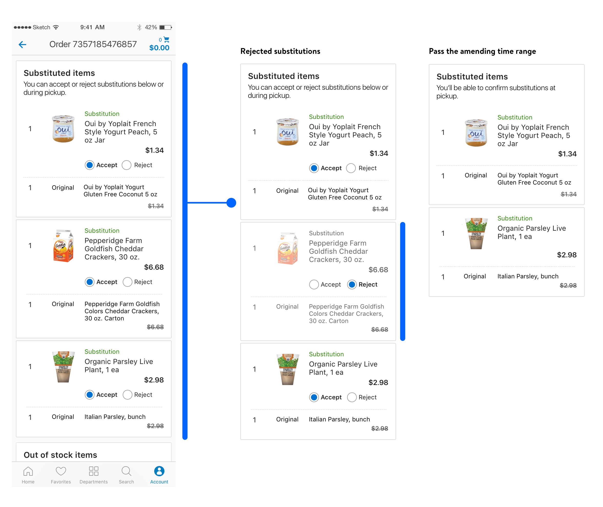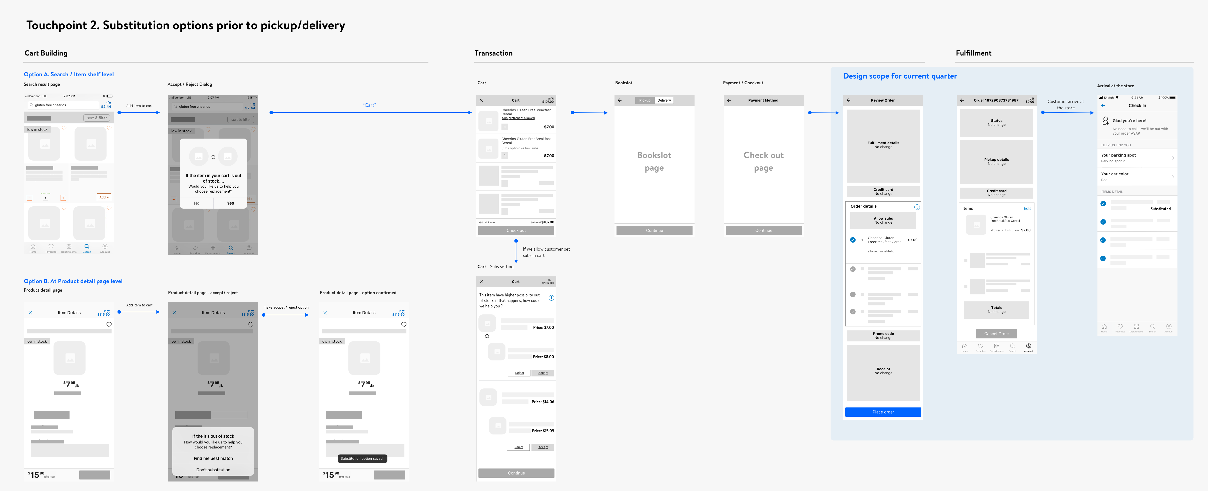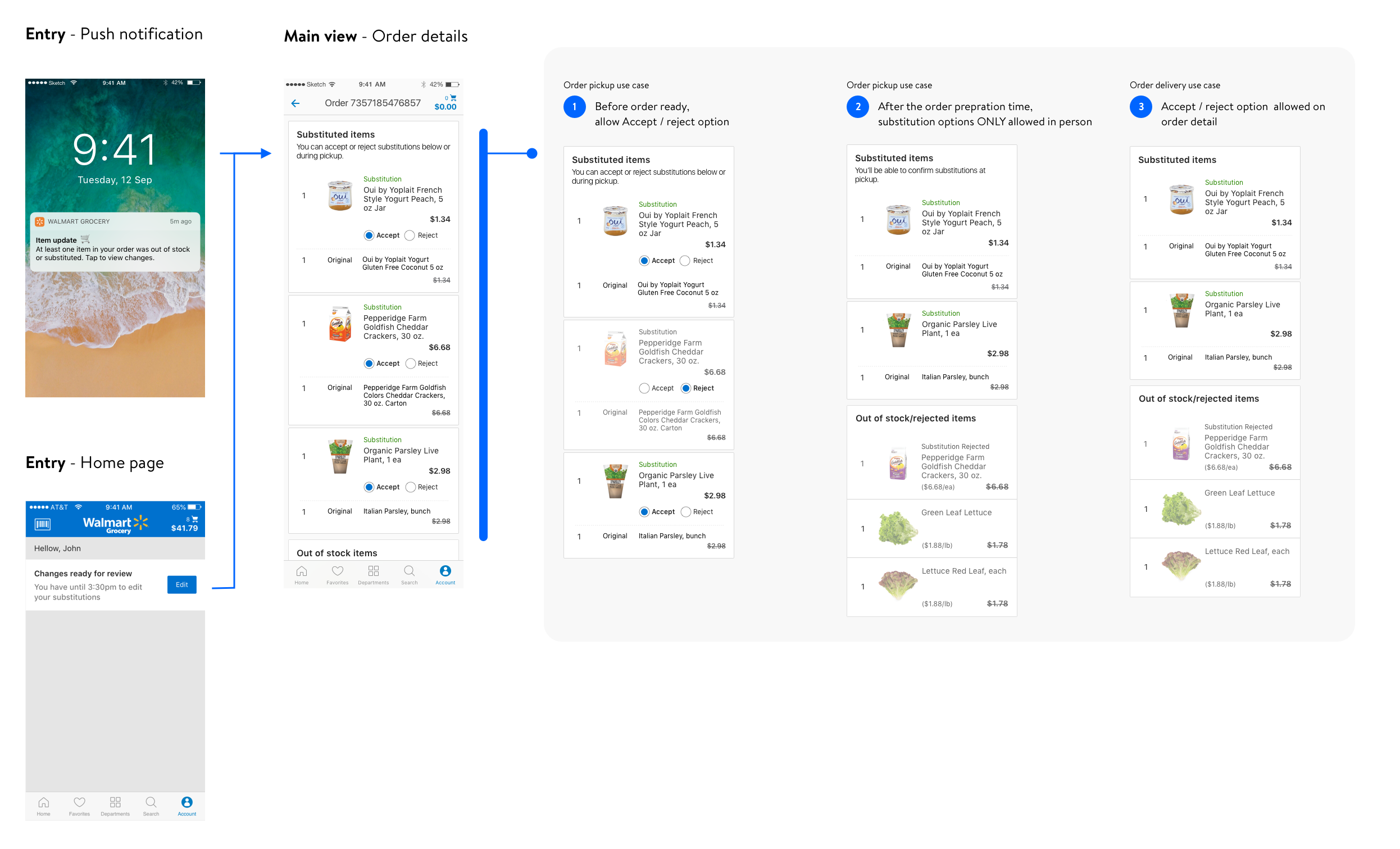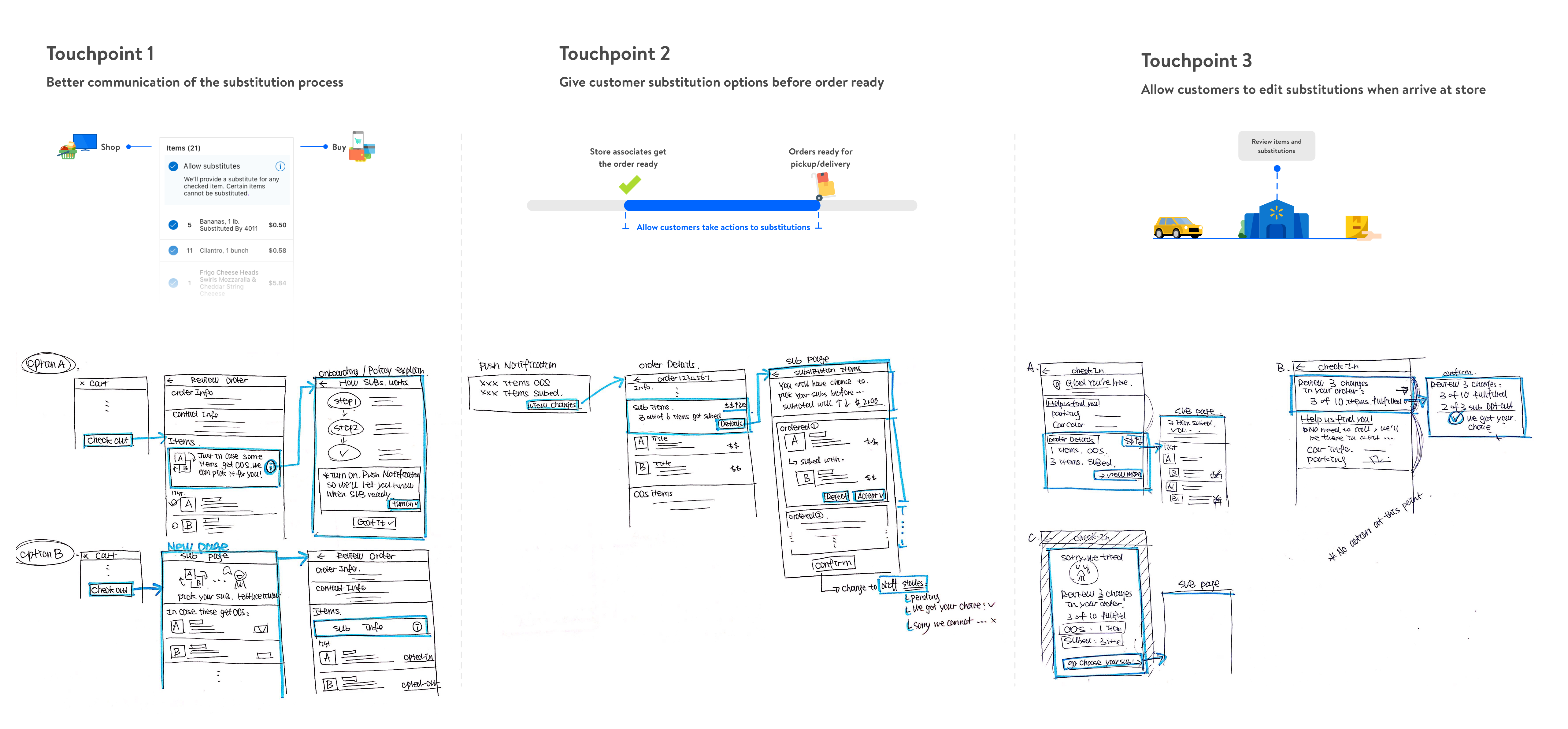 After identifying all the touch points and key opportunity areas, we decided to implements all the design concepts progressively through 3 key evolutions. While still keep a holistic view of the entire substitution experience & user flow in mind, prioritize different design concepts helped the entire product team to ship, test and iterate better.