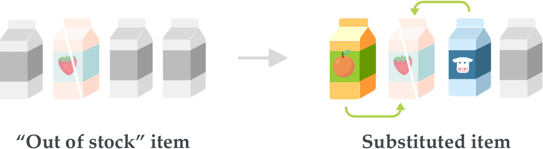 Shopping with online grocery shop platform, in case the items you ordered is out of stock, if you allow for substitutions, you will receive a replacement that is similar, larger or better brand or quality.