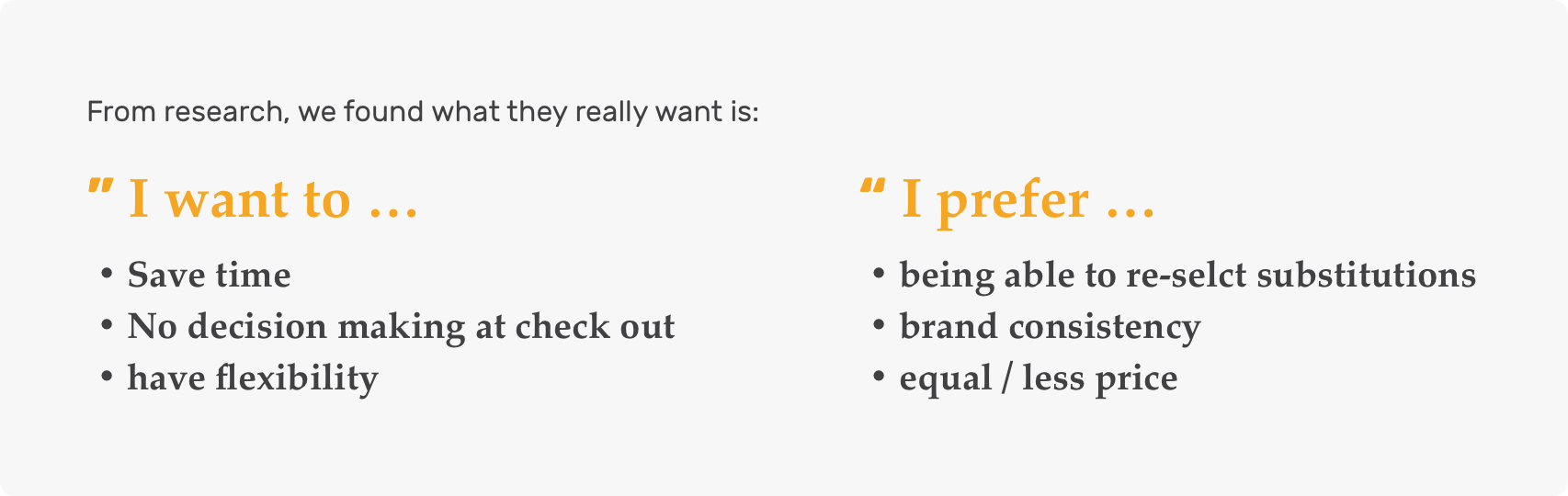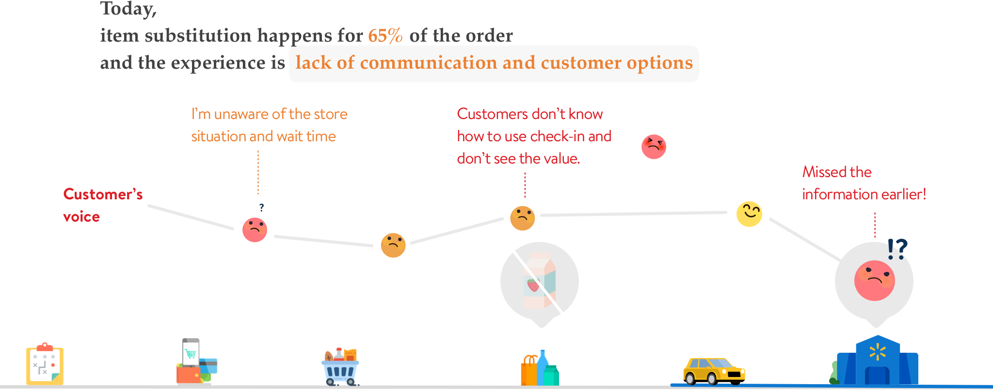 To understand customer’s mental modal and pain points during building basket, we studied customer’s behavior through in-depth interviews, concept walkthroughs and timeline collaborative activities.